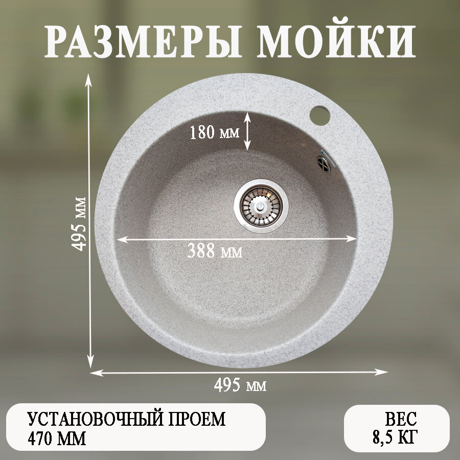 Мойка для кухни мраморная GranAlliance круглая D-490 серая матовая без сифона интересное: