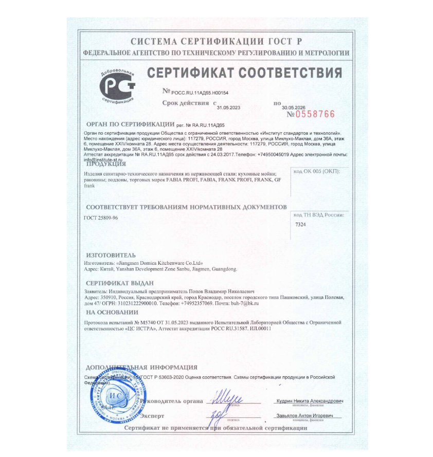 | Число размеченных отверстий под смеситель | отсутствуют |