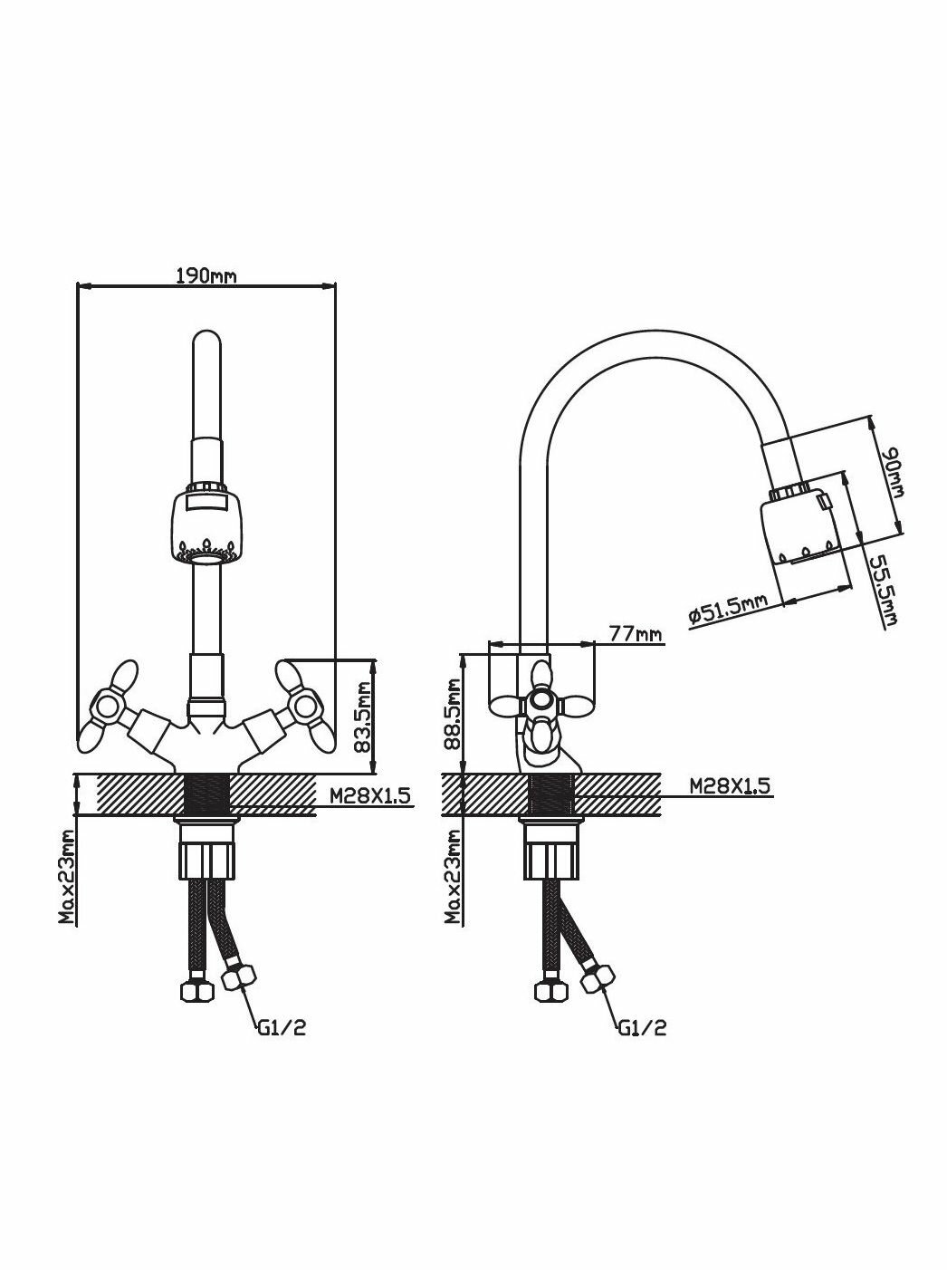 | Комплектация | смеситель, гибкая подводка 35 см |