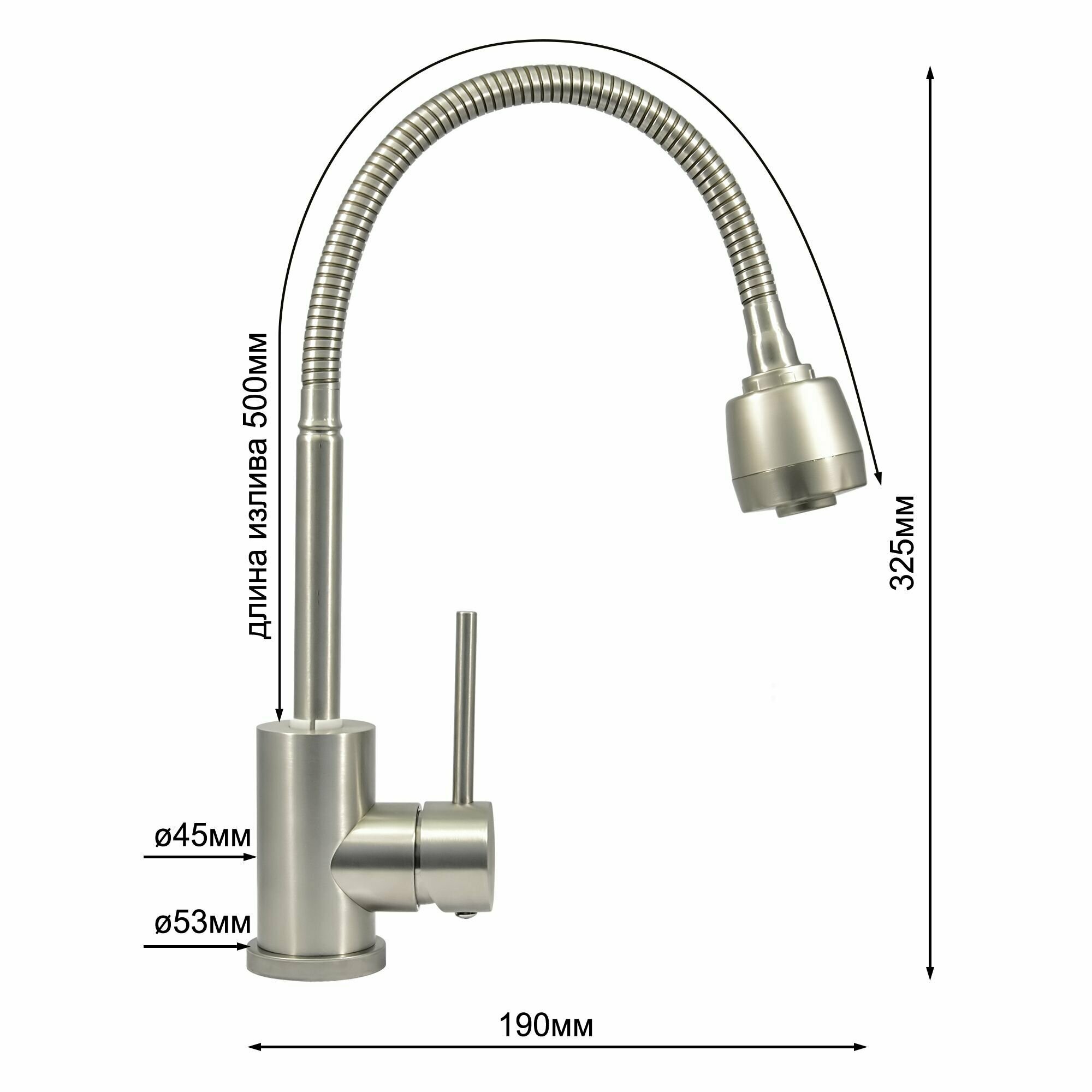 | Длина излива | 190 мм |
