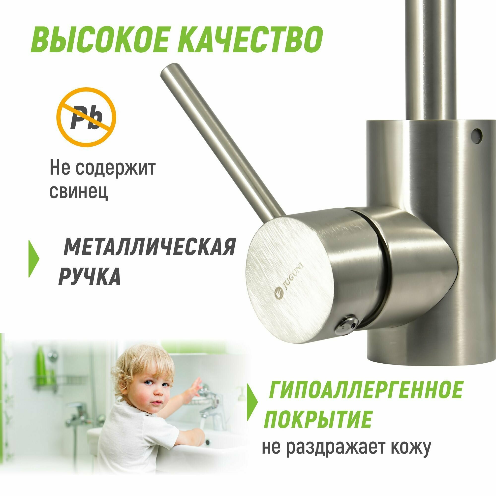 Смеситель для кухни, Juguni, гибк излив, с картриджем, нерж, 0402.167 интересное: