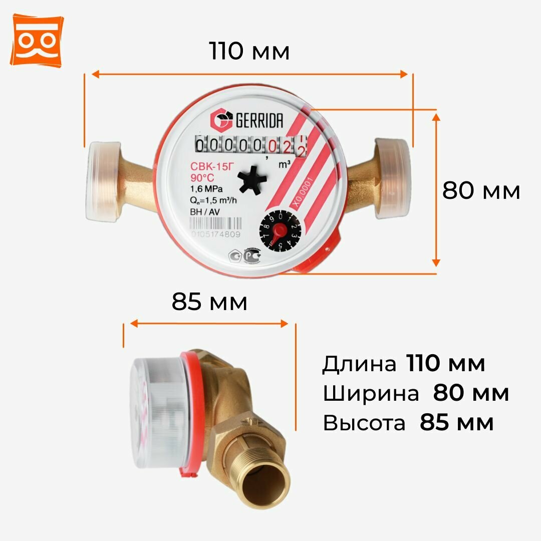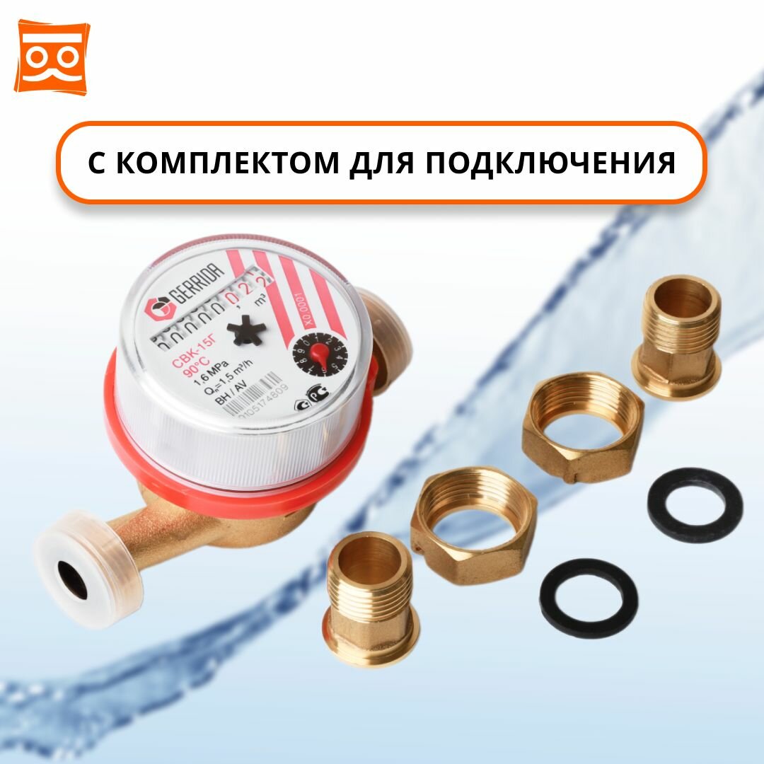 Счетчик воды универсальный Геррида СВК-15Г 110мм (Gerrida) с монтажным комплектом / Поверка Не старше 35 дней интересное: