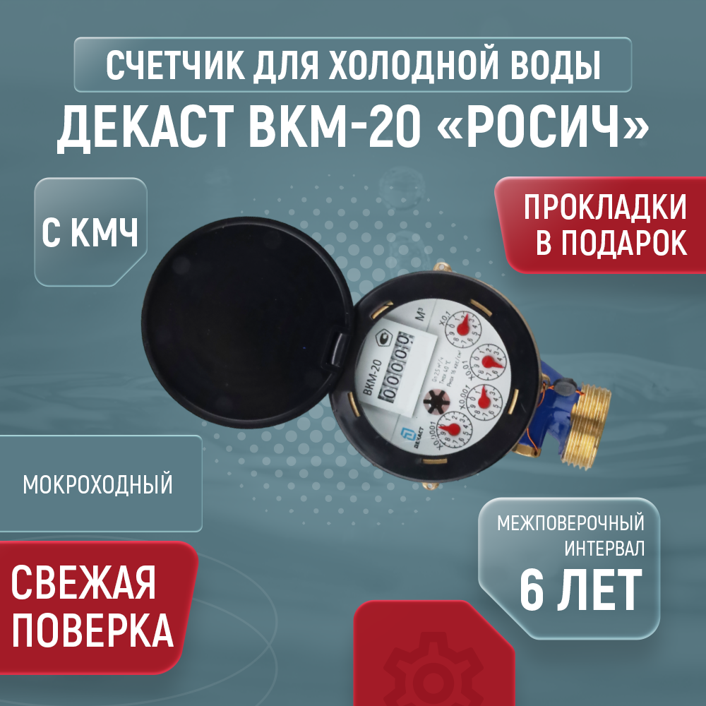 Счетчик для холодной воды мокроходный декаст ВКМ росич Ду 20 130 с КМЧ