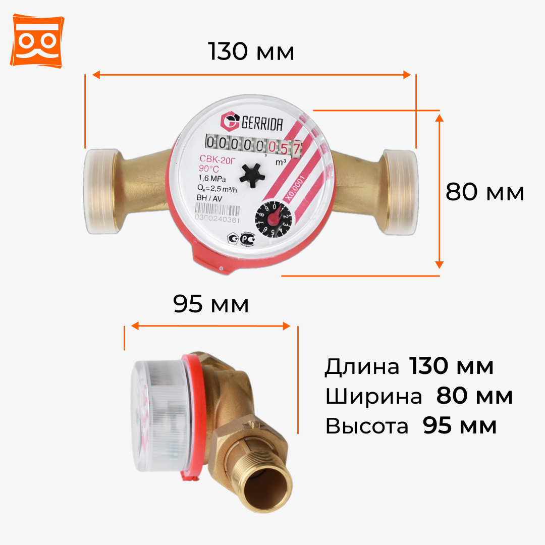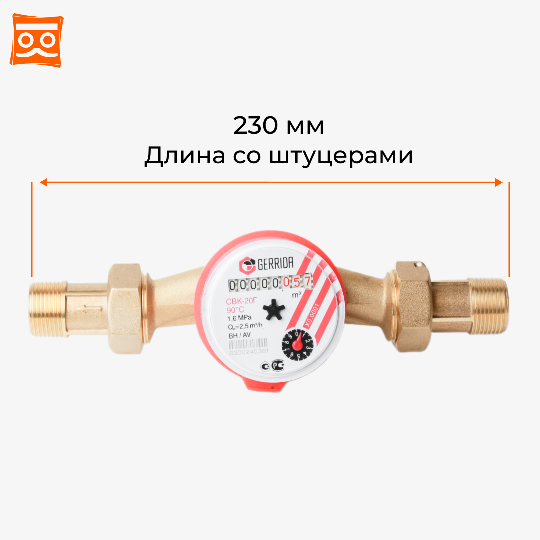 Счетчик для воды универсальный крыльчатый Gerrida СВК-20Г 3/4", 130 мм / Поверка Не старше 35 дней интересное: