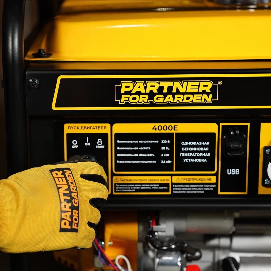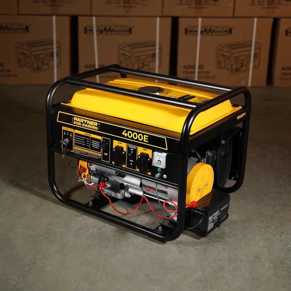 Генератор бензиновый Электрический Partner for garden 4000Е ( 4.875 кВа максимальная нагрузка , 220 В / 12 В, 3 / 3.5 кВт, 50 Гц, 7 л.с, электростартер + АКБ )