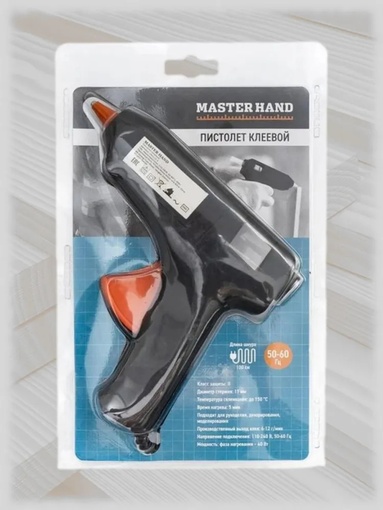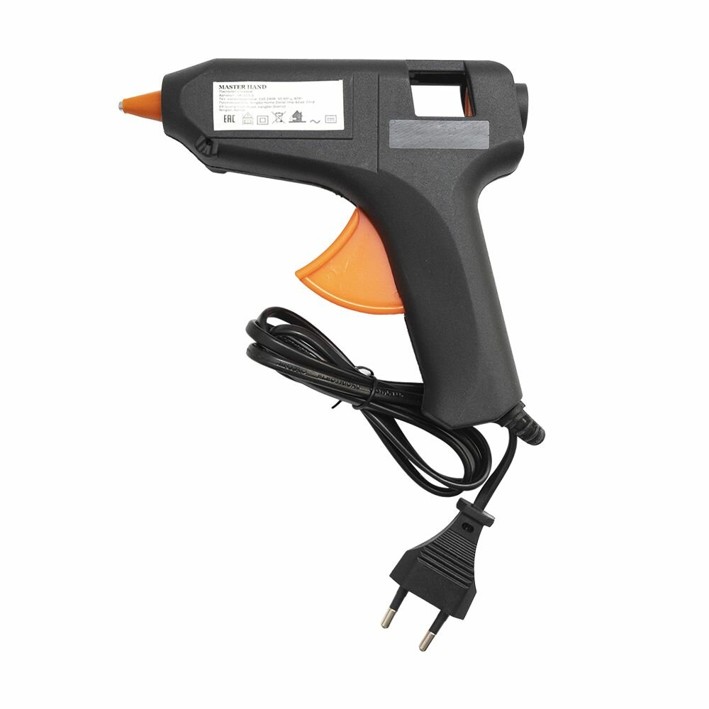 Пистолет Master Hand, 220В, 50 Гц, с клеевым стержнем 11мм, питание от сети, время нагрева 30 секунд
