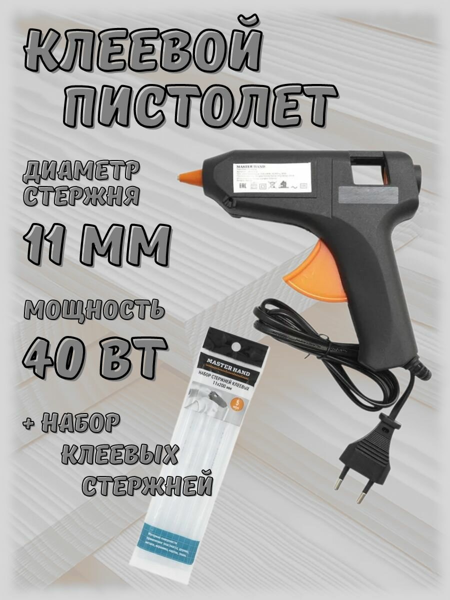 Клеевой пистолет MASTER HAND , 11 мм, время нагрева 5 мин, интересное: