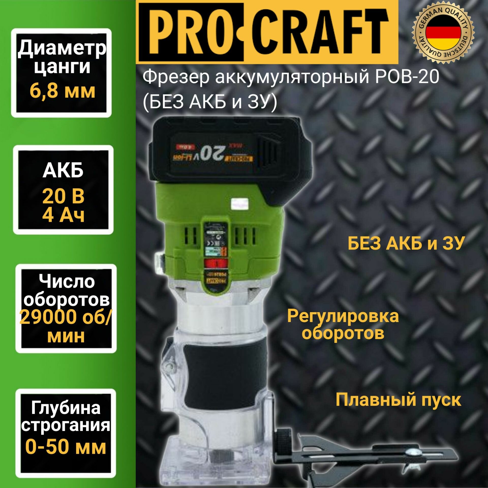 Фрезер аккумуляторный Procraft POB-20 (без АКБ и ЗУ), цанга 6мм, 29,000об/мин интересное: