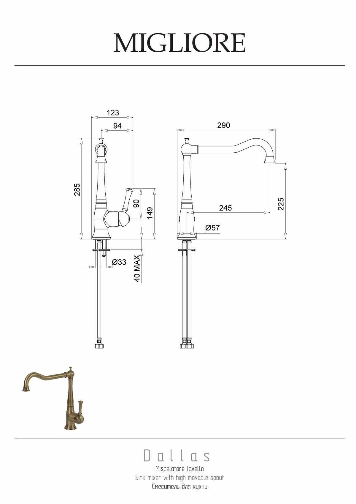 Смеситель Migliore Dallas ML.CUC-6882.CR для кухонной мойки