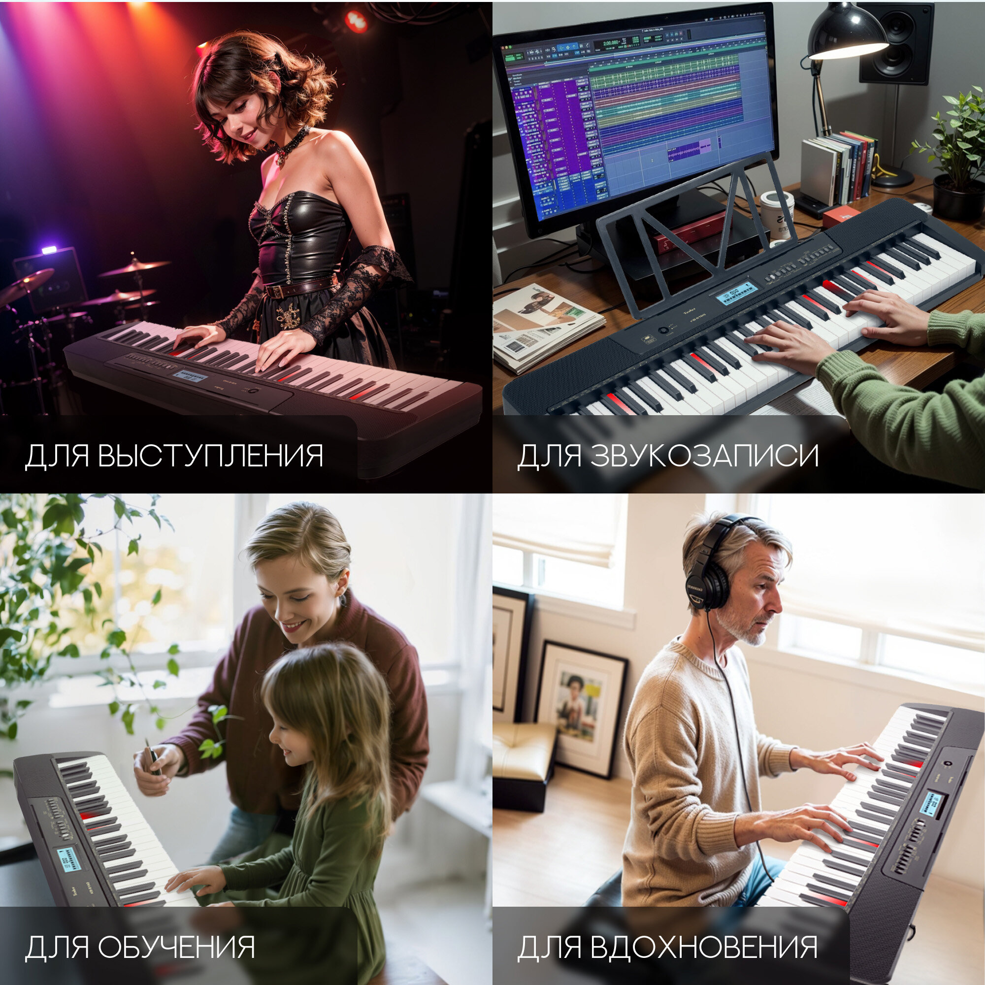 | Функции и опции | автоаккомпанемент / запись песен / метроном / обучение / разделение клавиатуры / русский язык / транспонирование |