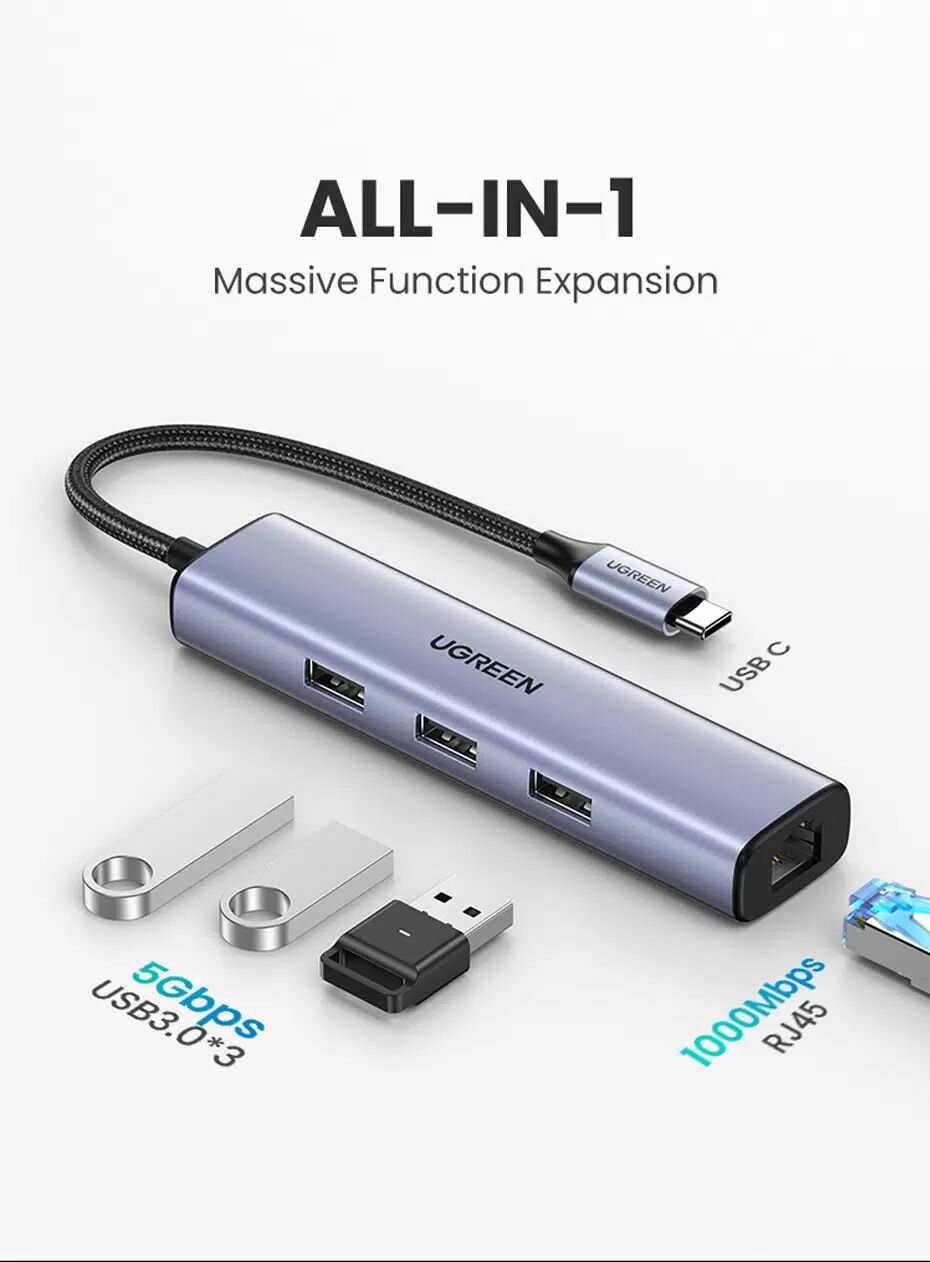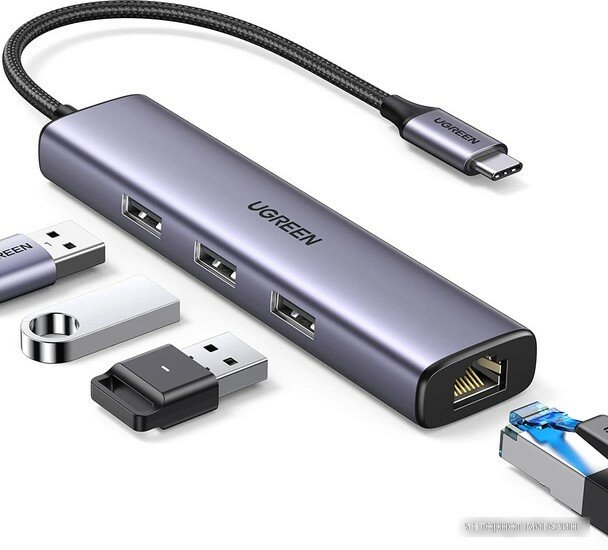 СохранитьПорт-репликатор UGREEN CM475 USB-C to 3×USB3.0 Hub+RJ45 (1000M) Ethernet Adapter без порта питания, серый интересное: