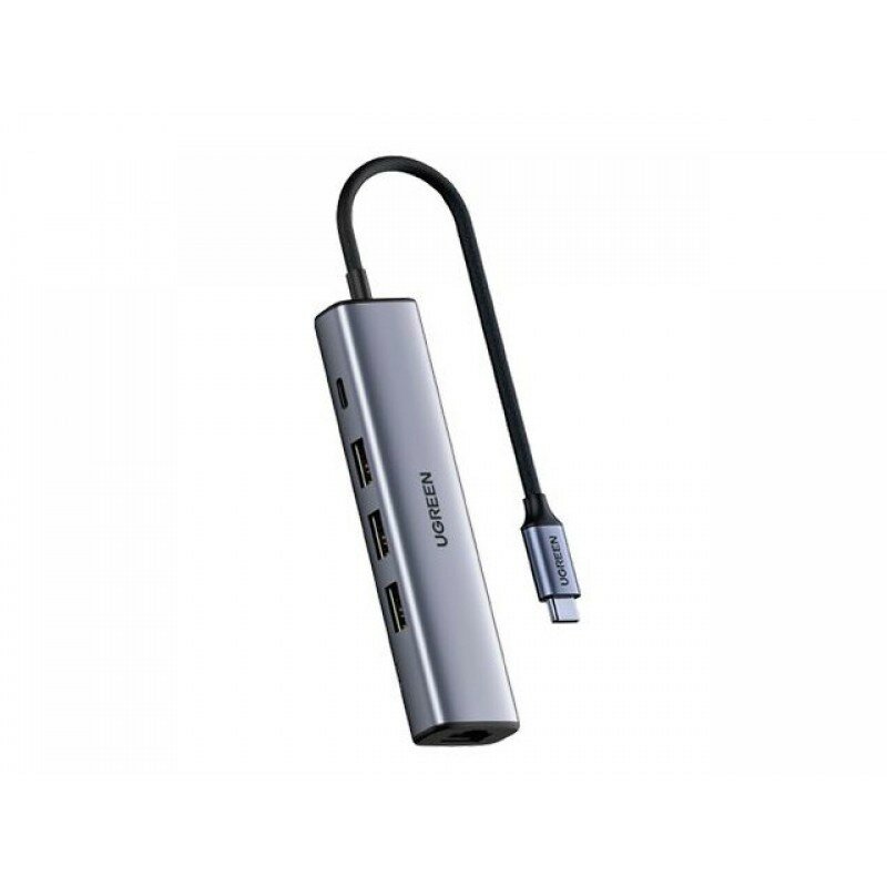 Мульти Хаб UGREEN CM475 (60600) USB-C to 3×USB3.0 Hub+RJ45 Ethernet Adapter без порта питания серый
