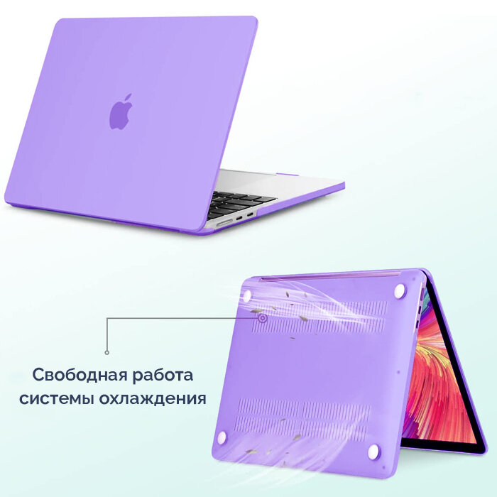 Чехол для MacBook Air 13.6 2022 2023 2024 M3 A3113 M2 A2681 Hard Shell Case лавандовый