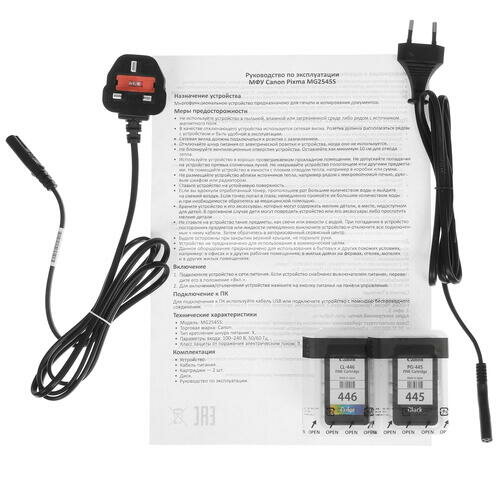 | Тип картриджа/тонера | черный PG-445 (180 стр.), цветной CL-446 (180 стр.), черный PG-445XL (400 стр.), цветной CL-446XL (400 стр.) |