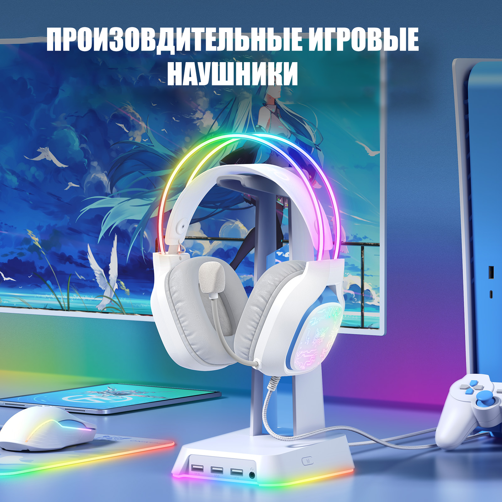 Игровые наушники ONIKUMA X25 Rainbow Spirit белые, с подсветкой