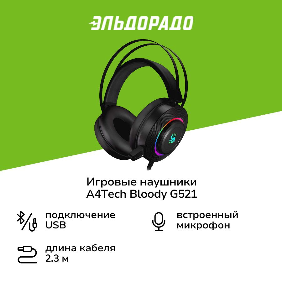 Наушники A4Tech Bloody G521 игровые, с микрофоном, USB, чёрный