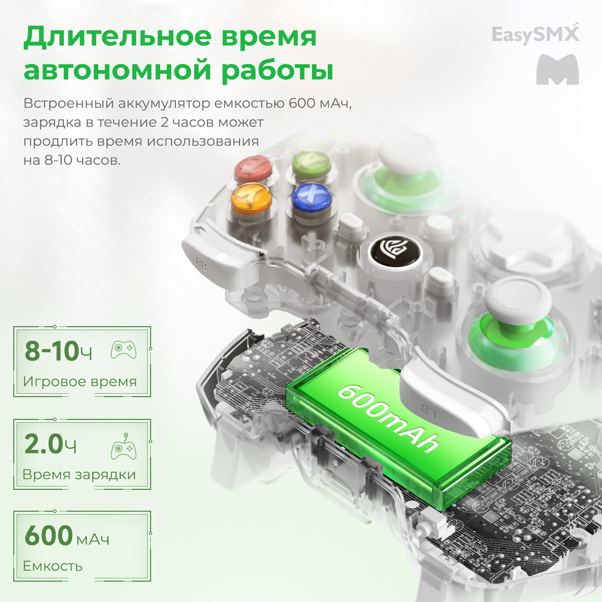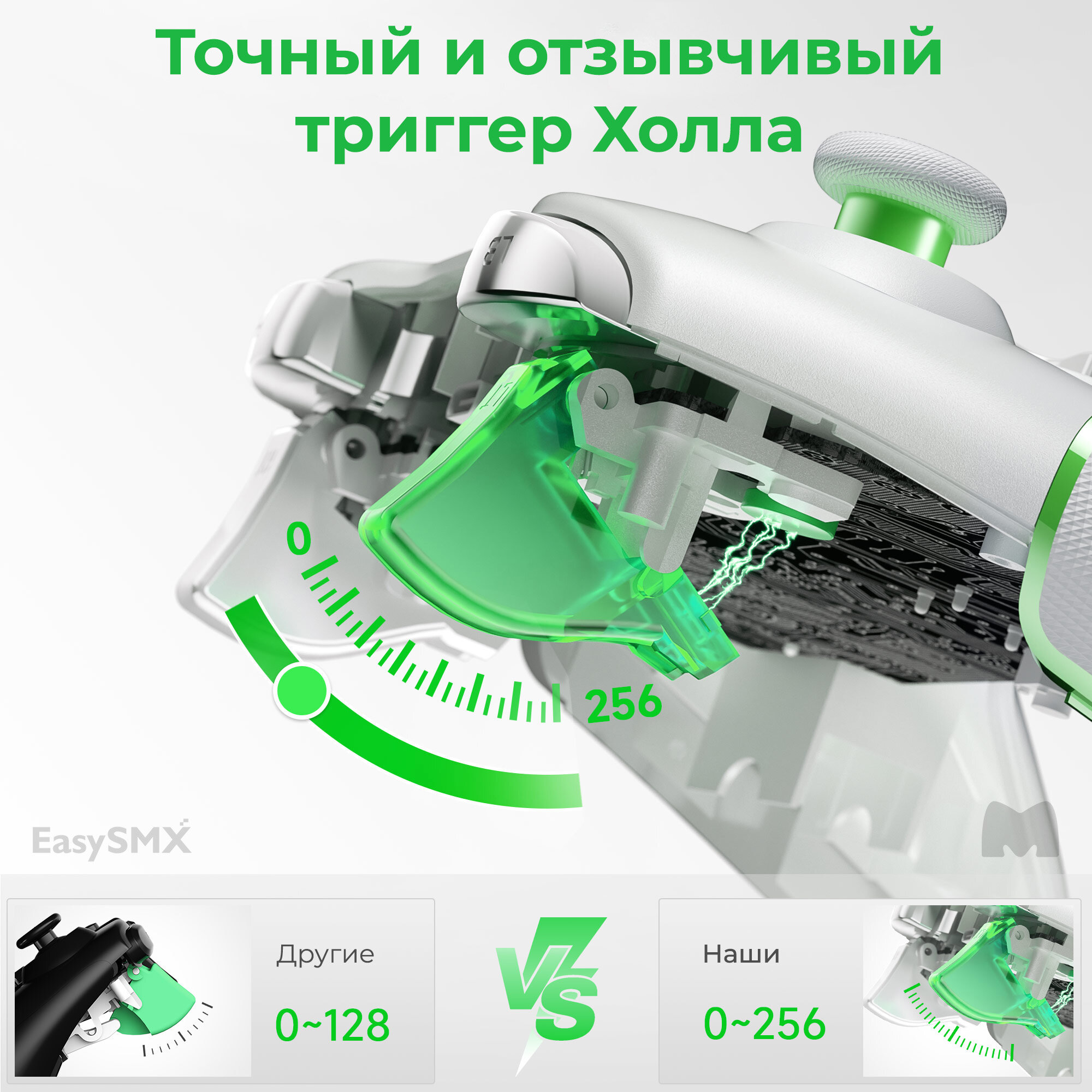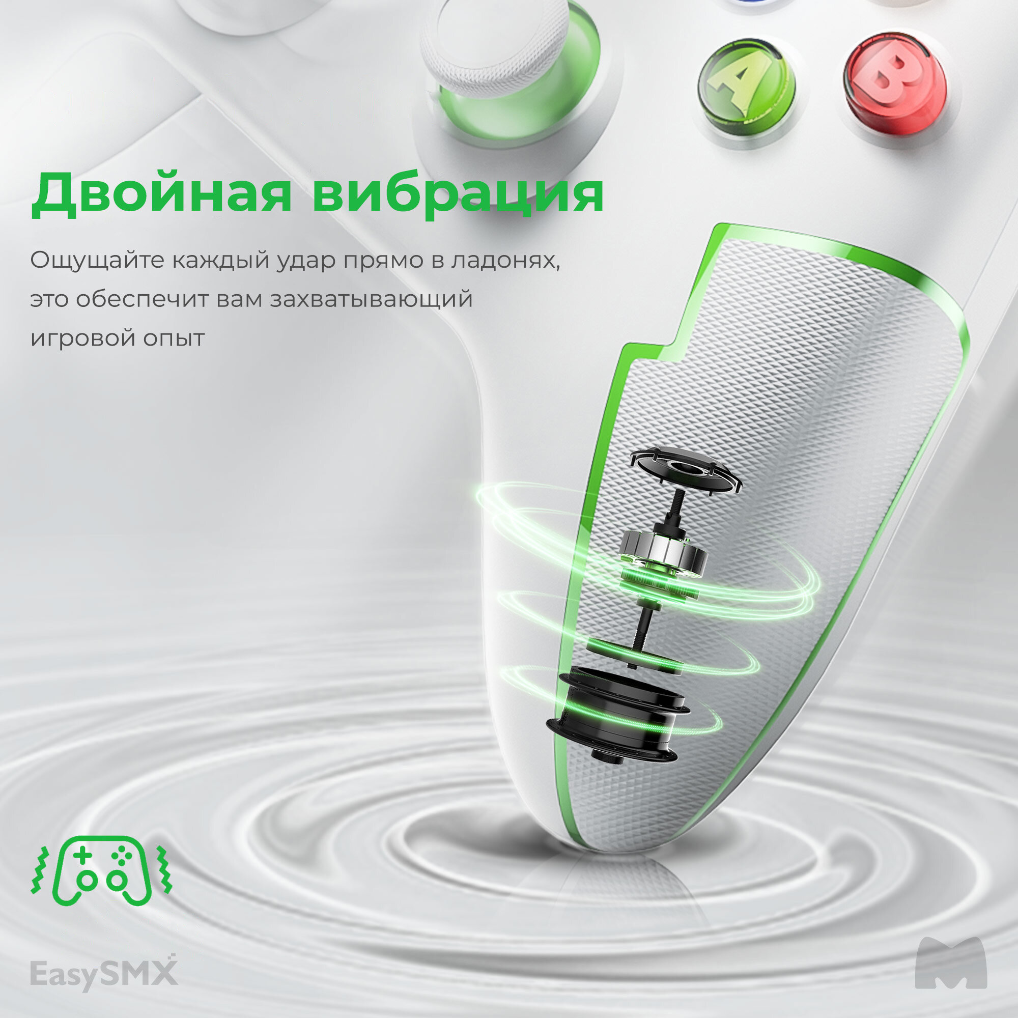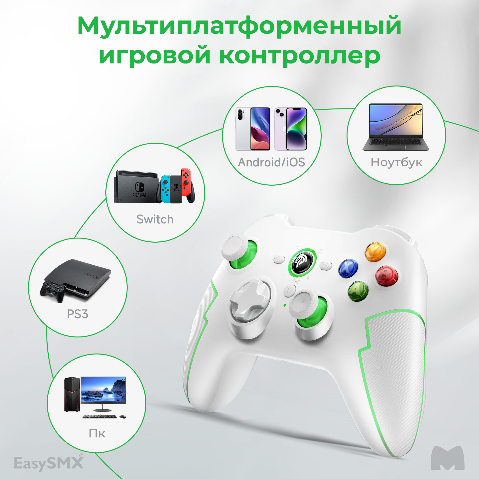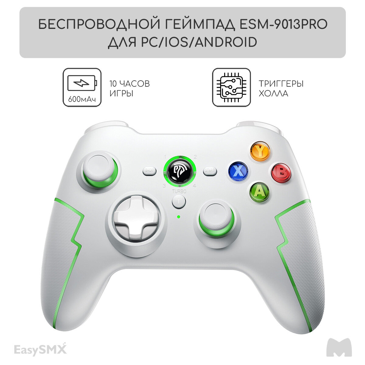 Купить Беспроводной геймпад EasySMX ESM-9013Pro / Для ПК, Смартфона iOS и Android / Bluetooth, 2,4Ггц / датчики Холла / цвет бело-зеленый (VG-C416)