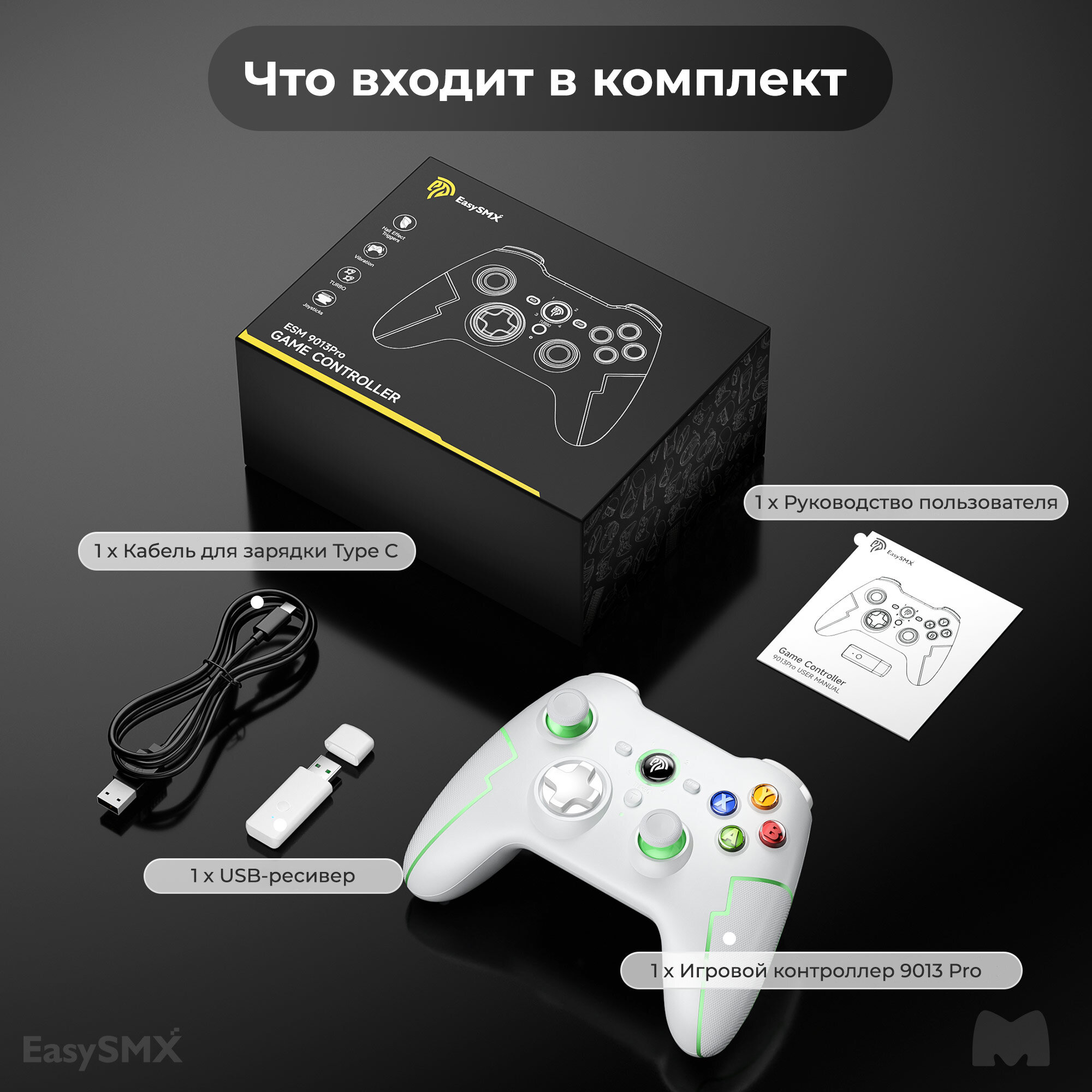 СохранитьБеспроводной геймпад EasySMX ESM-9013Pro / Для ПК, Смартфона iOS и Android / Bluetooth, 2,4Ггц / датчики Холла / цвет бело-зеленый (VG-C416) интересное: