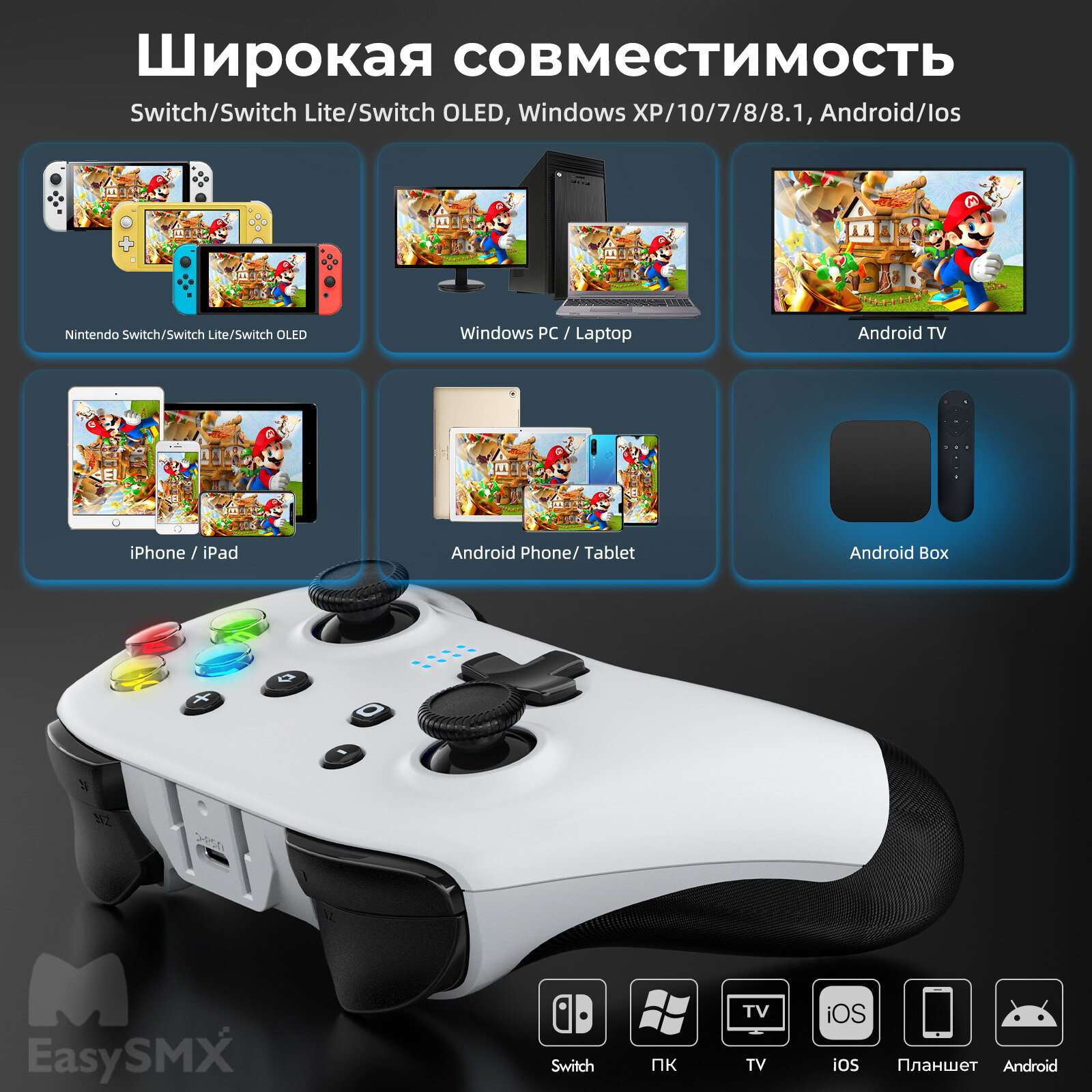 СохранитьБеспроводной геймпад EasySMX ESM-9124 / для Nintendo Switch, Switch Lite, Switch Oled, Смартфонов iOS + Android / Bluetooth, цвет белый (VG-C397) интересное: