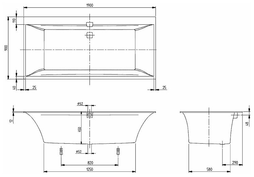 Ванна, Villeroy&Boch, Squaro Edge 12, шгв 1900*900*450, цвет-белый
