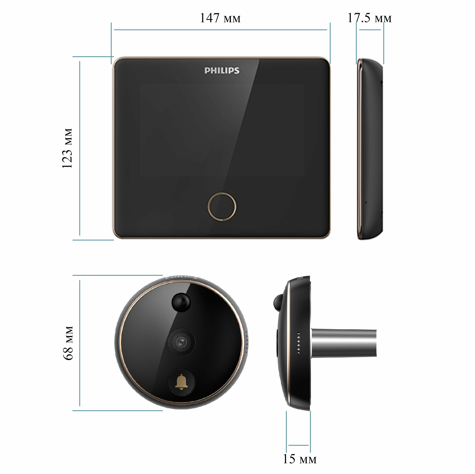 Дверной Wi-Fi видеоглазок - Philips EasyKey Smart Door Viewer DV001, цвет медь - видеоглазок на входную дверь
