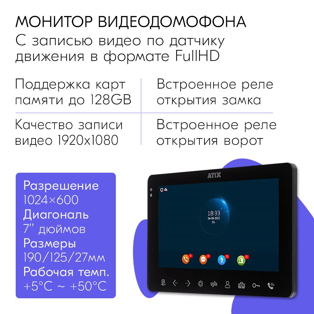 Монитор видеодомофона Full HD для квартиры - 7 дюймов с встроенным модулем сопряжения (Черный) интересное:
