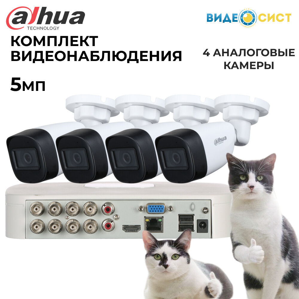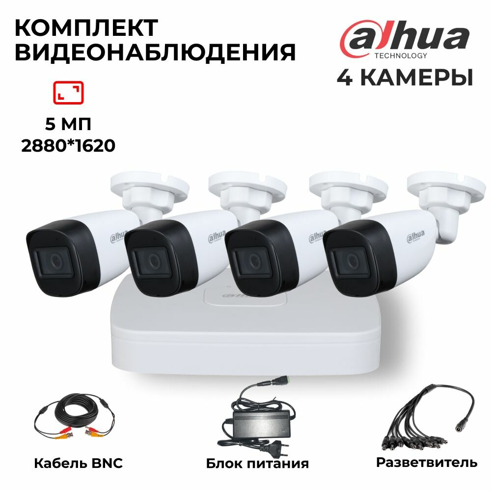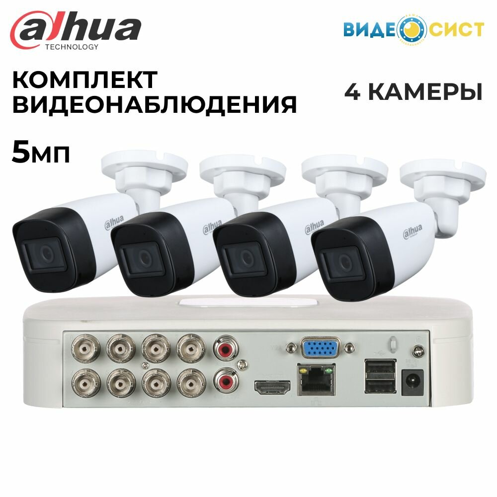 Купить Комплект видеонаблюдения 5Мп Dahua 4 аналоговые камеры