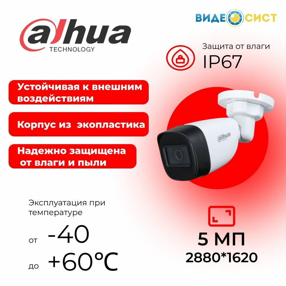 Комплект видеонаблюдения 5Мп Dahua 1 аналоговая камера