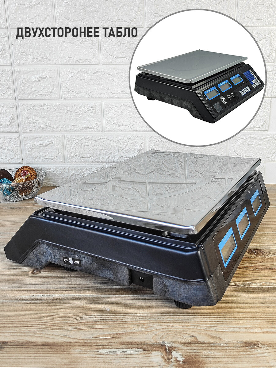 Весы торговые настольные до 40кг., адаптер, дисплей с двух сторон, память. Baizheng интересное: