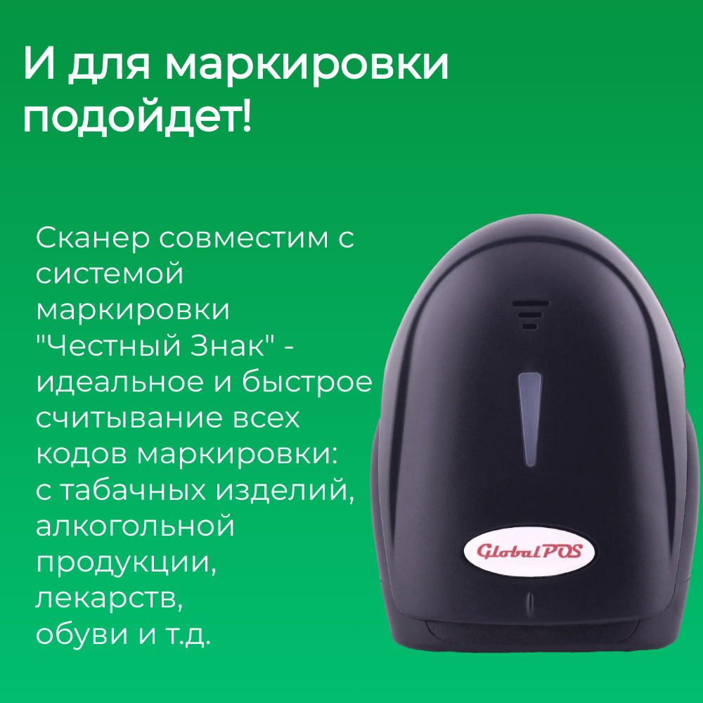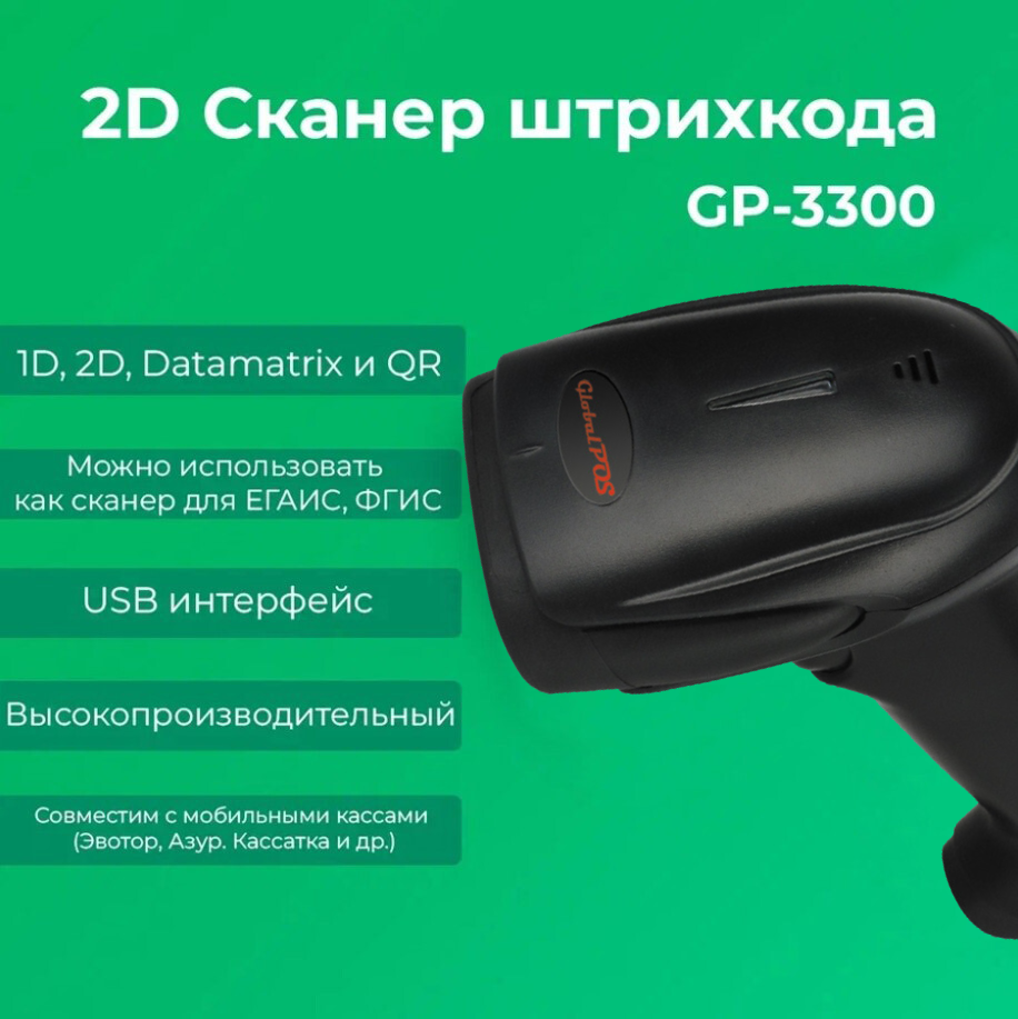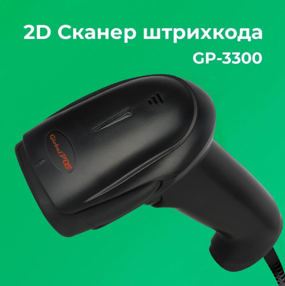 Сканер штрихкода GlobalPos GP-3300, ручной 2D, USB, черный интересное: