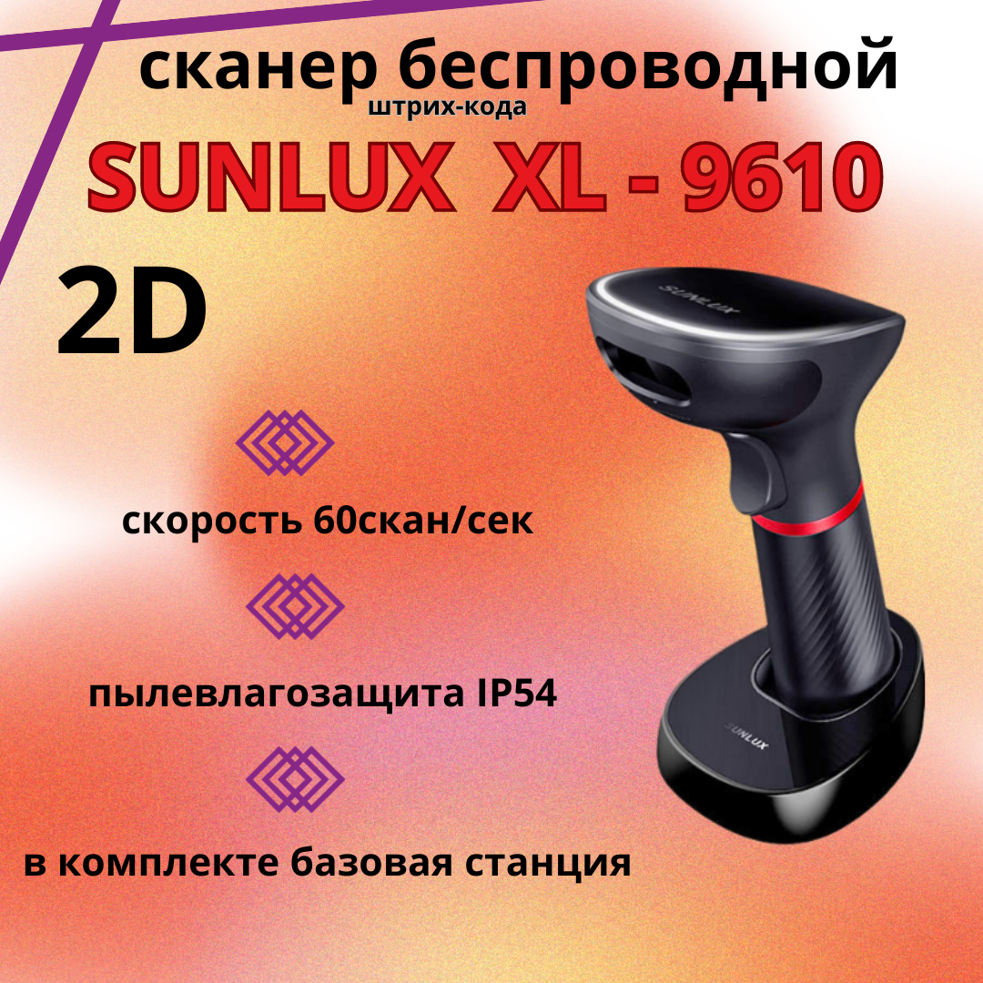 Сканер штрих-кода Sunlux XL-9610 USB (2D, беспроводной) (база в комплекте)