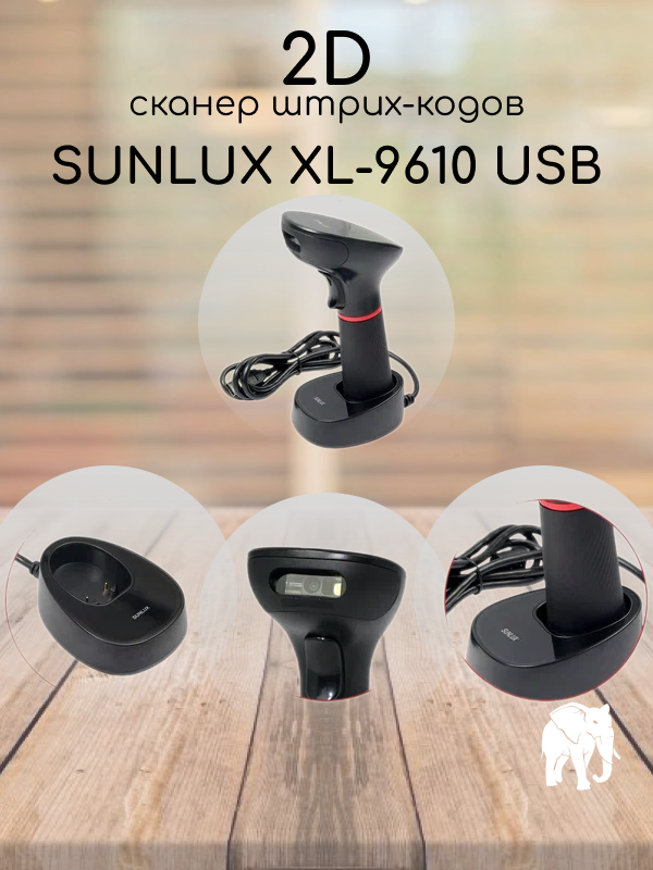 Беспроводной сканер штрих-кодов SUNLUX XL-9610 USB (2D, в комплекте с базовой станцией), для маркировки, для ПВЗ
