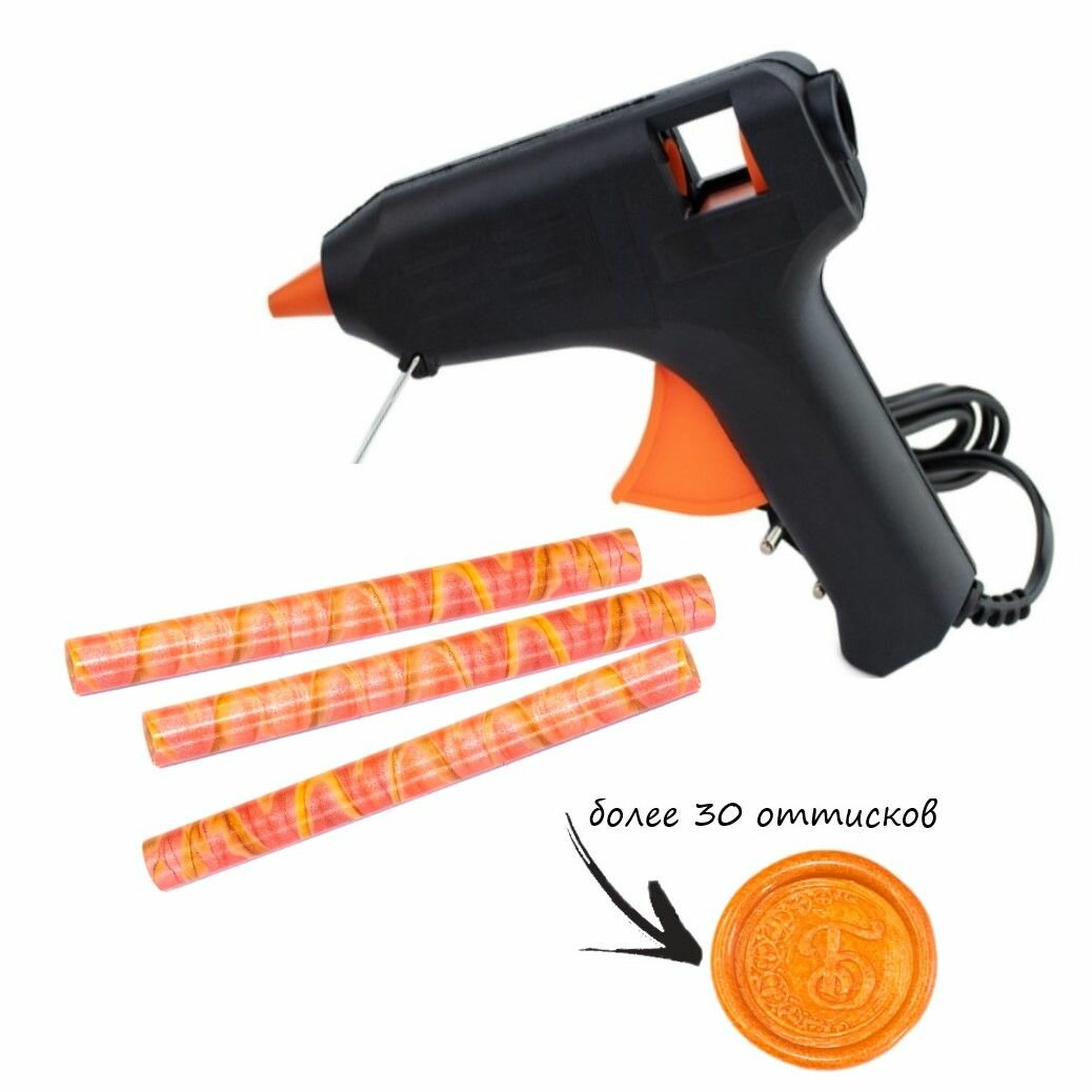 Набор: сургучных стержней (3 штук палочек) цвета "Солнечный микс" и пистолет для плавки сургуча