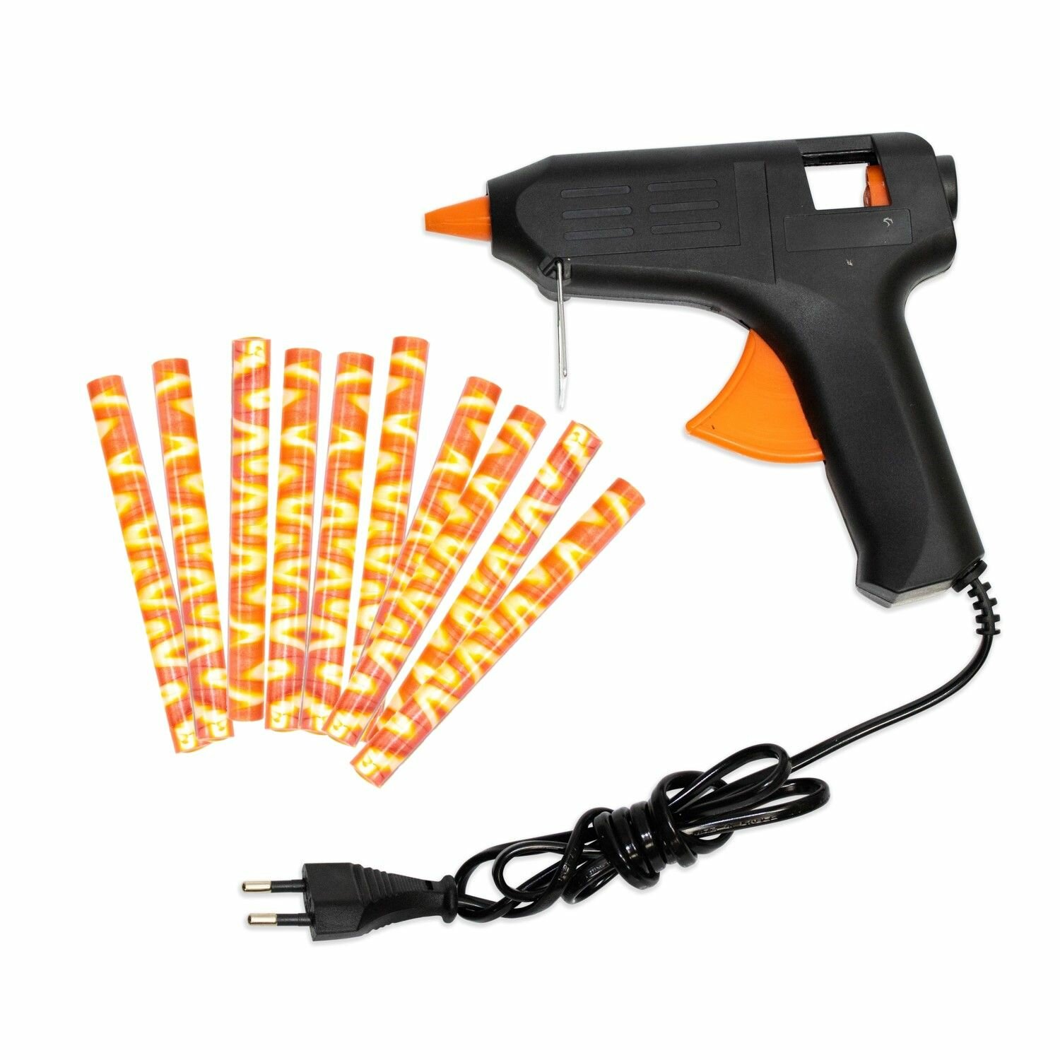 Набор: сургучных стержней (10 штук палочек) цвета "Солнечный микс" и пистолет для плавки сургуча