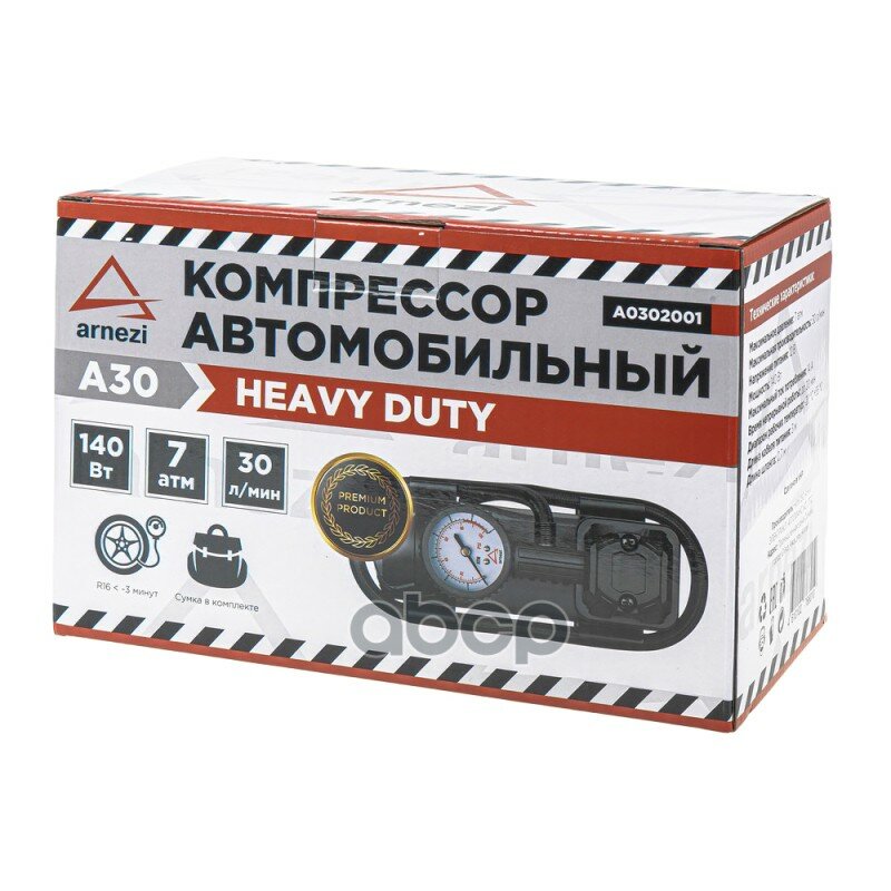 Купить A0302001 ARNEZI Компрессор автомобильный ARNEZI A30 Heavy Duty 7 бар, 30 л/мин, 140 Вт, A0302001