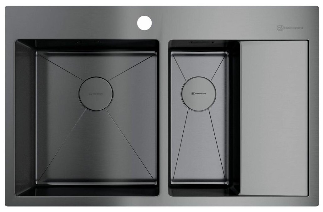 Кухонная мойка OMOIKIRI Akisame 78-2-GM-L 78х51см нерж.сталь/вороненая сталь