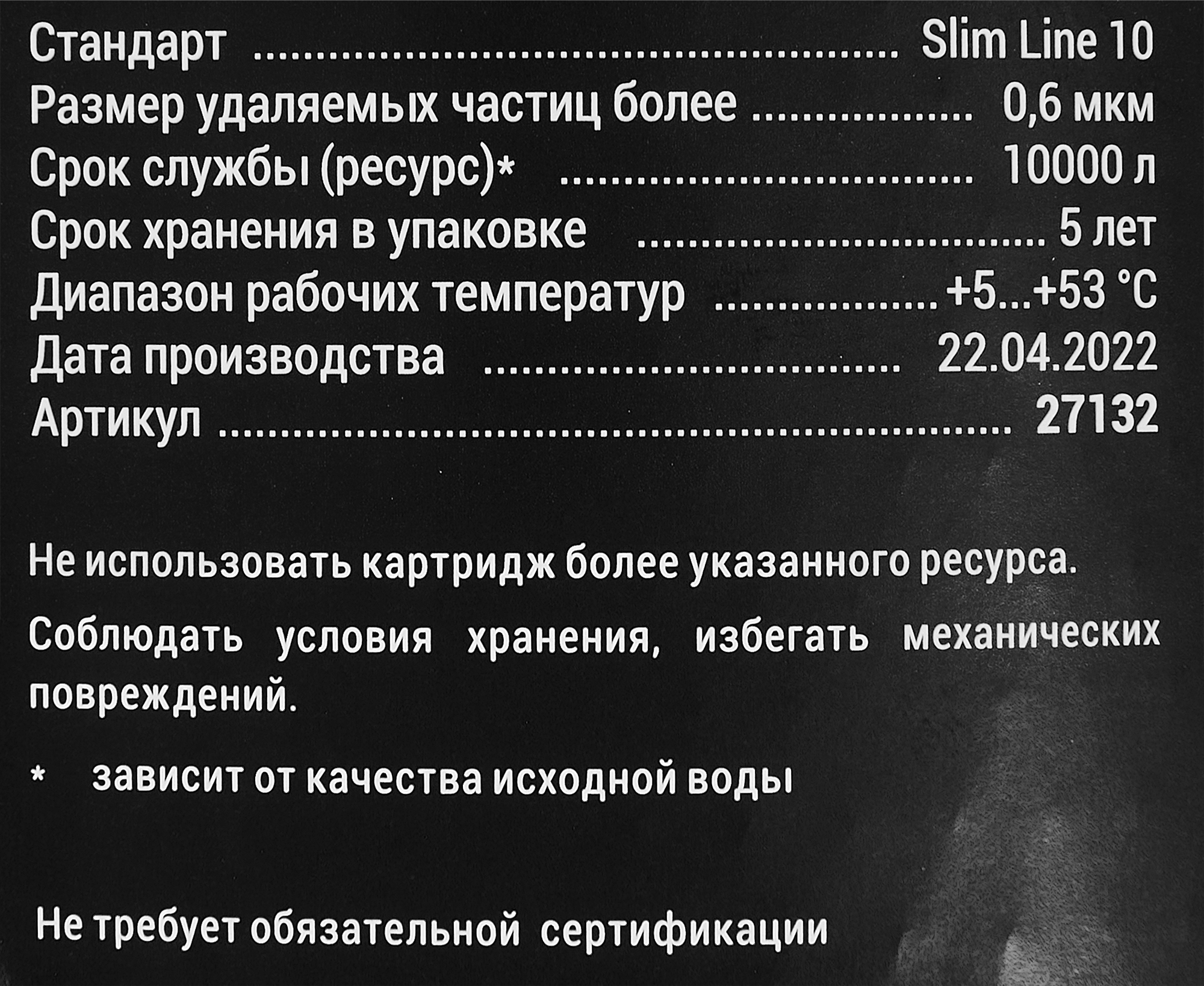 Картридж из вспененного полипропилена АКВАТЕК ЭКО 10" SL для хол воды 50 мкм