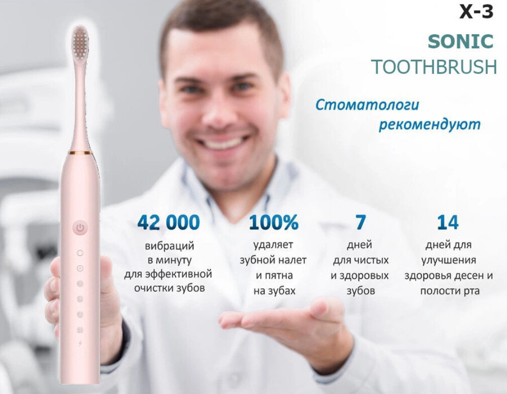 Электрическая зубная щетка Sonic X-3. Электрическая ультразвуковая зубная щетка .