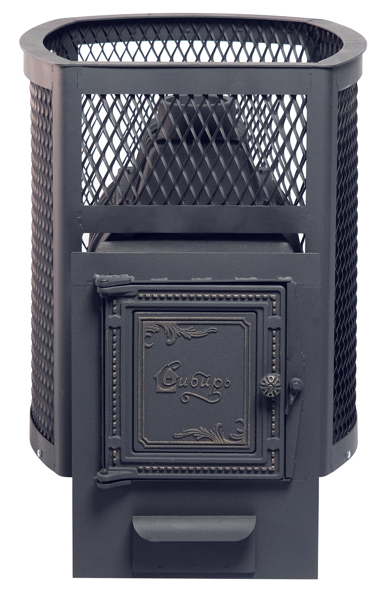Печь банная чугунная "Сибирь-24". Универсальная чугунная дверца (Сетка) дровяная