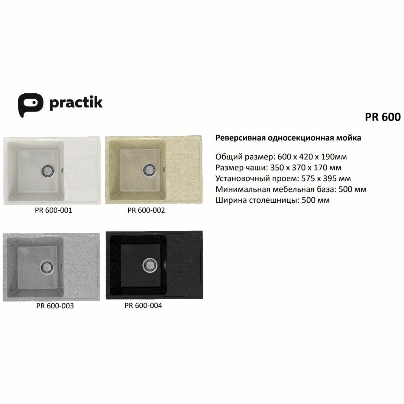 Мойка Practik PR-M 600-004, черный оникс интересное: