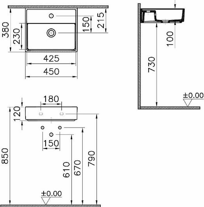 ArchiPlan 45х38х12см, подвесная раковина, санфарфор, арт. 7400B003-0001, Vitra интересное: