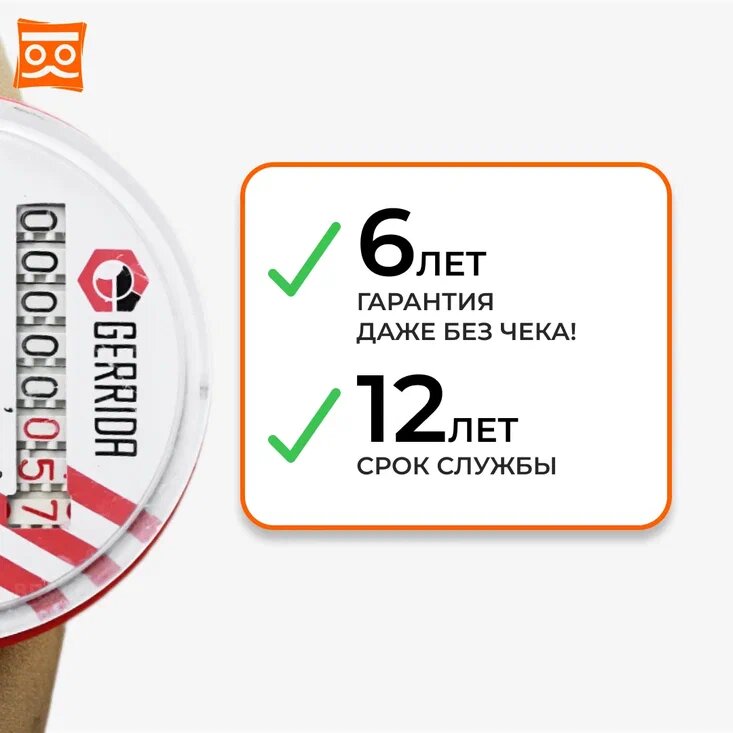 Счетчик воды Универсальный Геррида СВК-15Г, длинна 80 мм с монтажным комплектом / Gerrida, Поверка Не старше 35 дней (комплект 4шт.) интересное: