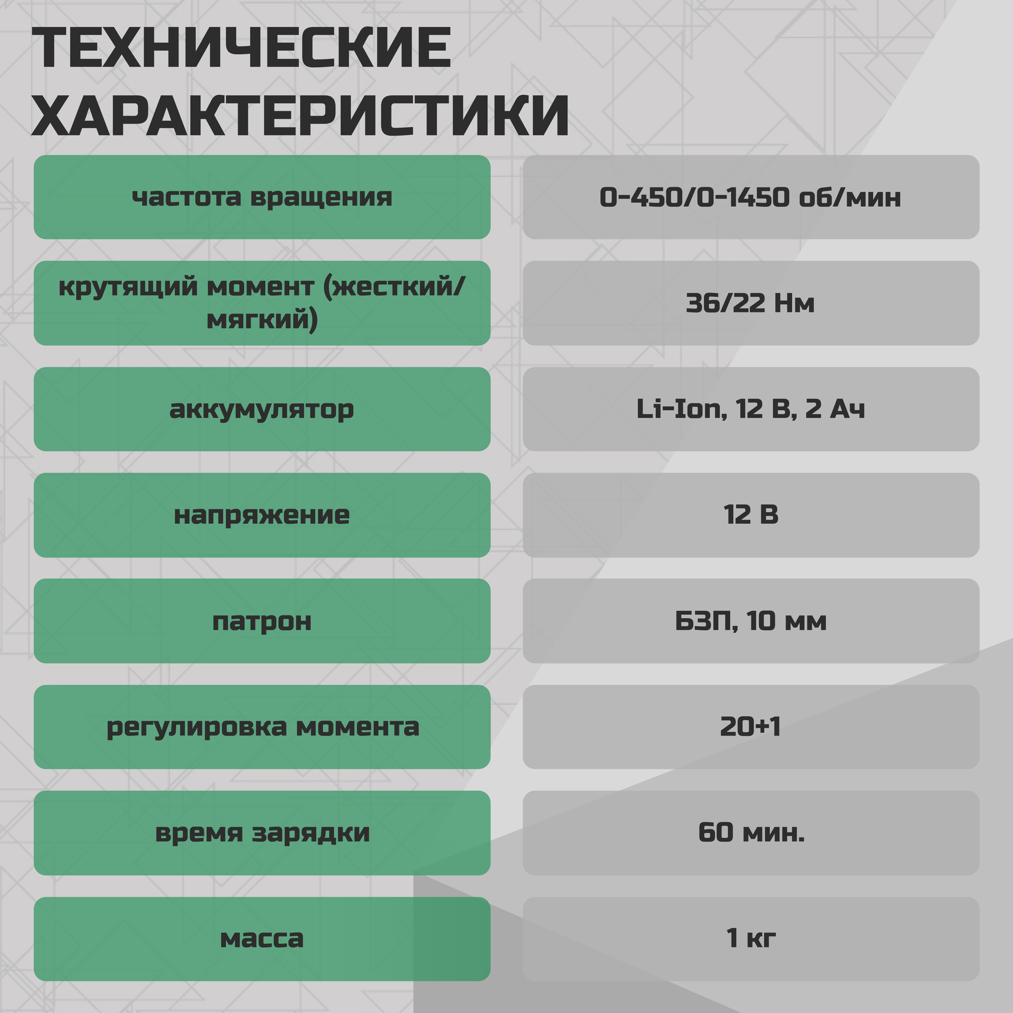 | Напряжение аккумулятора | 12 В |