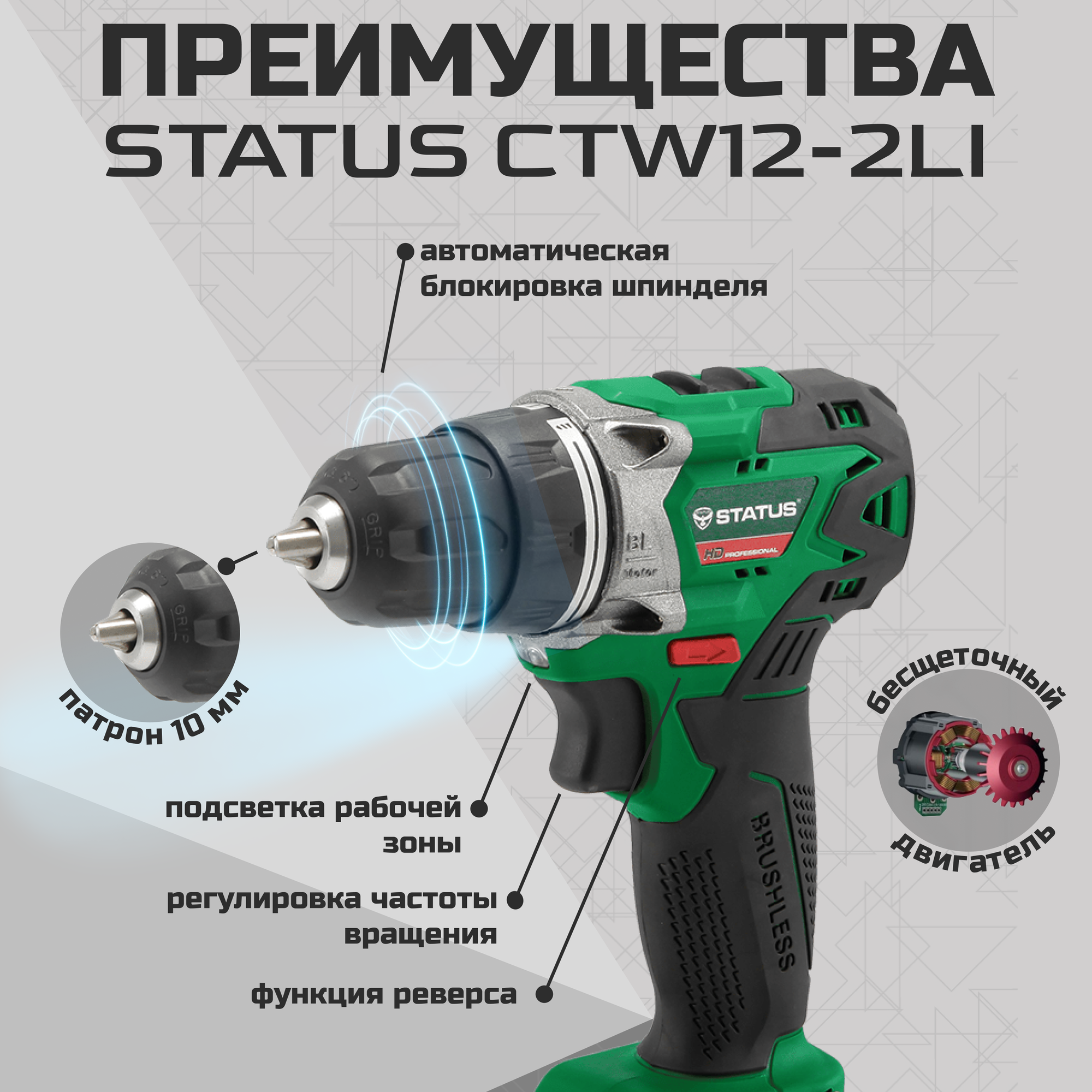Бесщеточная дрель-шуруповерт STATUS CTW 12-2Li интересное: