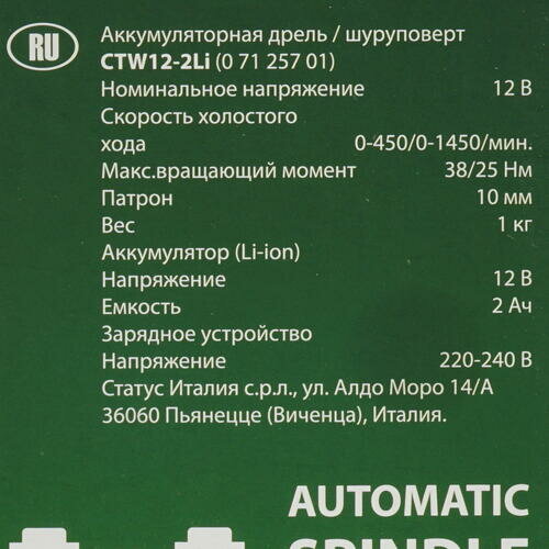 Аккумуляторная дрель-шуруповерт STATUS CTW 12-2 Li