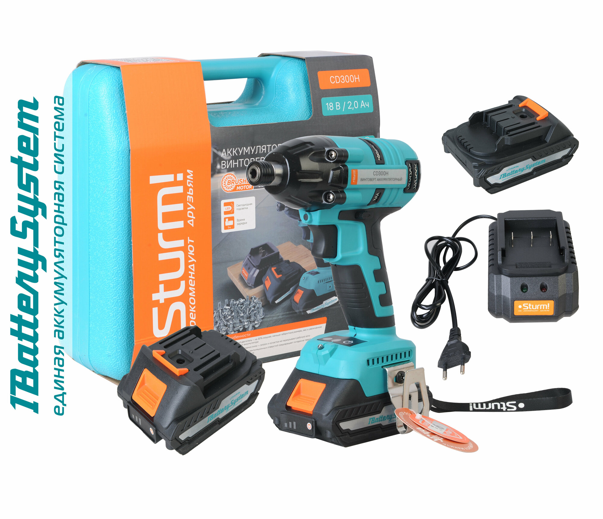 Винтоверт Sturm! Cd300h 18В,2скор,2акк Li-Ion 2,0Ач,300Нм,1/4",зар 1ч,1BatterySystem .