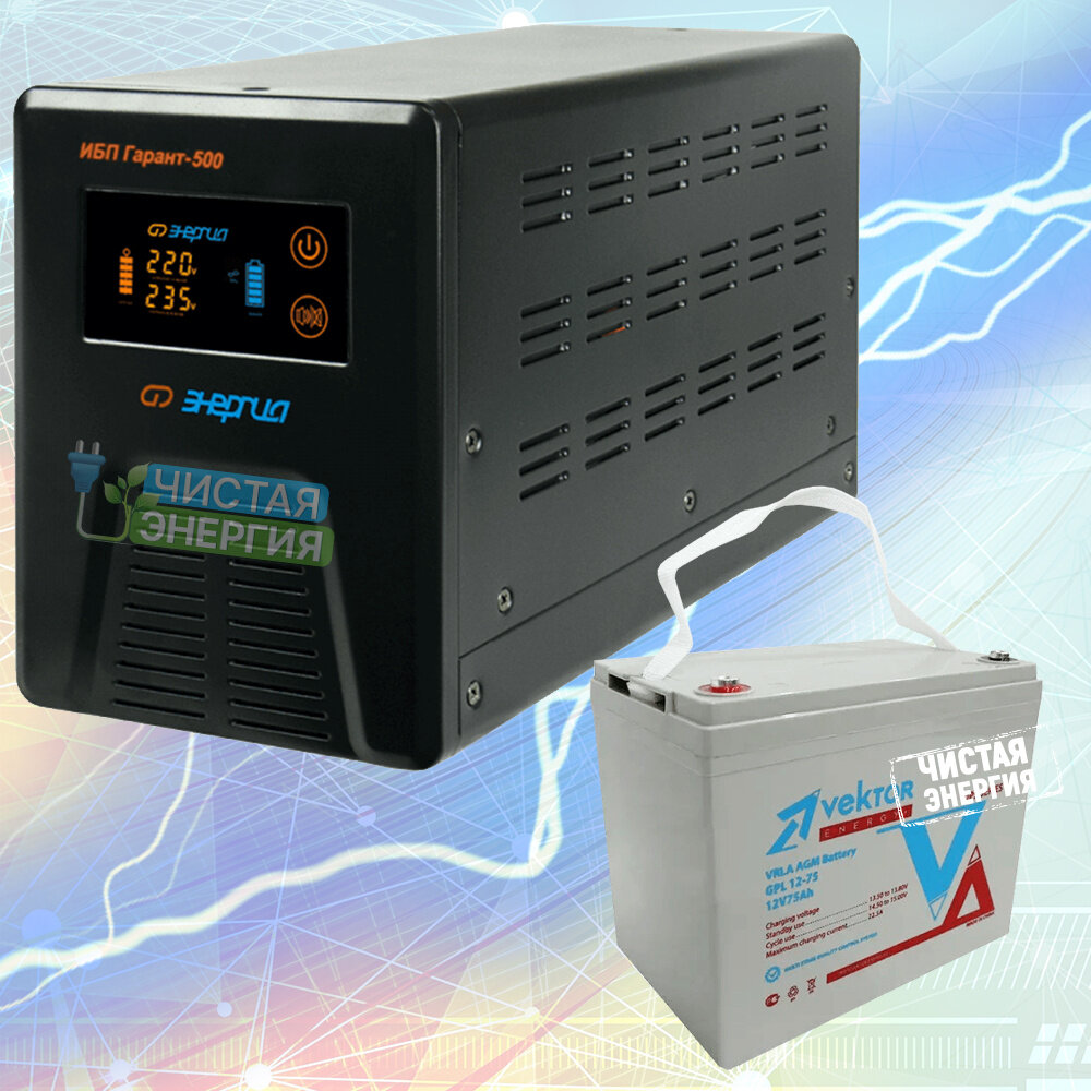 Интерактивный ИБП Энергия Гарант 500 в комплекте с аккумулятором Vektor Energy GPL 12-75 12В AGM (75Ач)