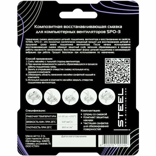 Смазка для компьютерных вентиляторов восстанавливающая 2гр Steel SPO-3 интересное: