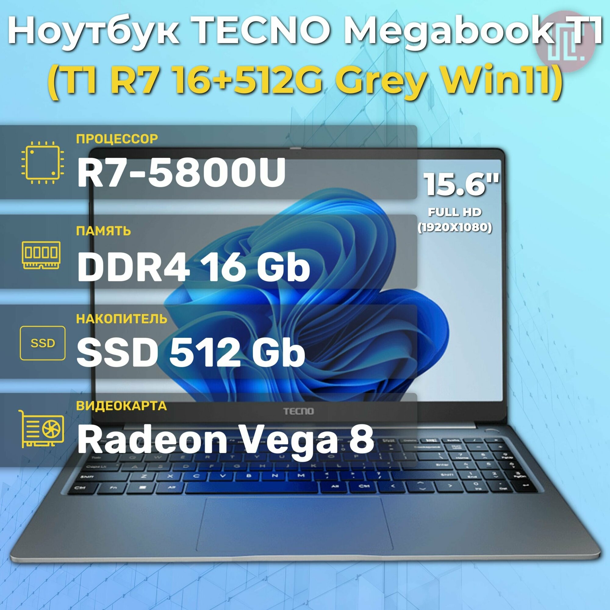 Ноутбук Tecno Megabook T1 2023 15 (T1 WIN R7-5800U 15.6 Grey)