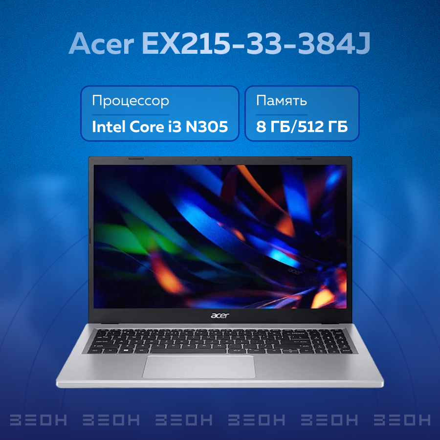 Купить Ноутбук Acer Extensa 15 EX215-33-384J 15.6" FHD IPS/Core i3 N305/8GB/512GB SSD/UHD Graphics/NoOS/RUSKB/серебристый (NX. EH6CD.001)